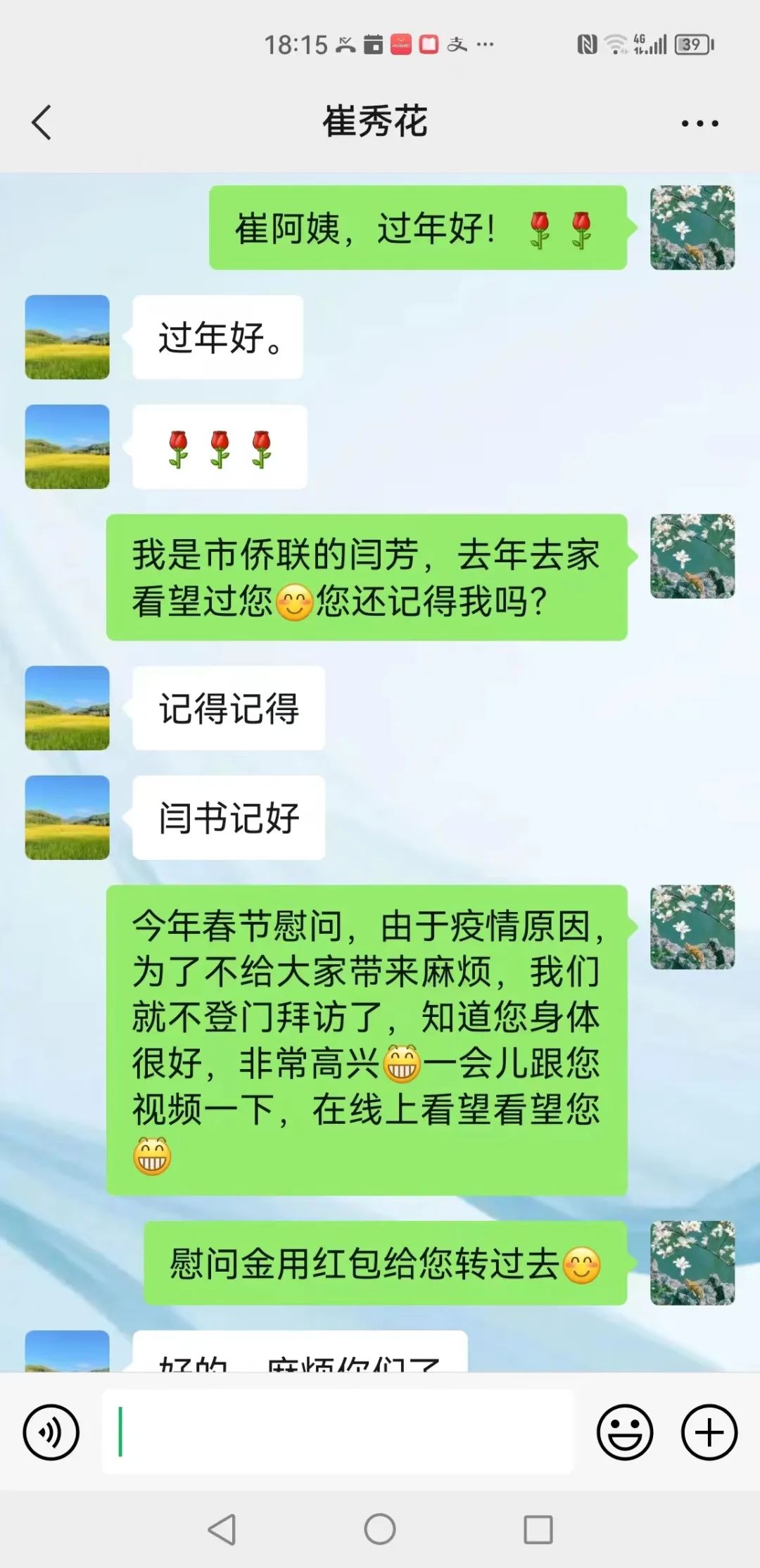 春节将至,连日来,晋城市侨联工作人员分别采取上门、视频连线、微信、电话等方式,慰问了归侨侨眷、老侨联工作者等困难群体,提前给他们送去节日祝福。 晋城市侨联结合当前疫情防控重心转移的新形势,在竭力守护归侨侨眷生命健康的前提下,精心谋划,摸清近况,采取适宜的方式,有序开展春节走访慰问活动,将党的温暖及时送达慰问对象。 侨联干部通过不同方式,详细了解老侨眷的思想动态、健康状况和生活近况,认真听取他们对侨联工作的意见和建议。对空巢、独居、失能、特殊困难的老同志,安排专人送去慰问金和慰问品,切实帮助其解决实际困难。对近期因病住院的侨眷,及时建立临时健康档案,随时掌握他们的身体和心理状况;对因病去世的侨眷,会领导及时上门看望慰问家属,让归侨侨眷深切地感受到遇事有人管、逢难有人帮。侨联干部还向在线慰问的人员介绍了侨联的发展变化,虽然隔着屏幕,却传递了暖暖的情谊和祝福。 全市归侨侨眷、老侨联工作者对市侨联的关心和慰问表示衷心的感谢,对侨联发展的美好前景也寄予了厚望和祝福。 |