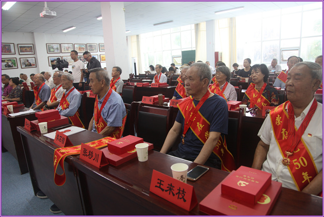 仪式上,全体党员共唱国歌;重温入党誓词;市委组织部副部长、老干局局长李炎,老干部局副局长郭旭勤为20名老党员代表颁发“光荣在党50年”纪念章。随后,老党员代表苏才生作了感人至深的发言,追忆峥嵘岁月,重温奋斗历史,充分表达了坚定不移听党话、感党恩、跟党走的坚定信念和决心。
