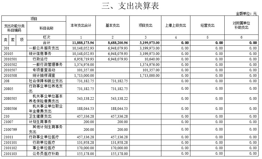 2021年度收入总计1188.82万元、支出总计1188.82万元。与2020年相比,收入总计减少315.34万元,下降20.76%。主要原因是1.项目经费中2020年度国家调查队追加2700000元扶贫攻坚专项普查经费,拨付于国家统计局晋城调查队使用。 2.我单位在2020年完成第七次人口普查工作,相关人员培训支出及工作经费支出较大。在2021年人普经费支出相对2020年支出减少。