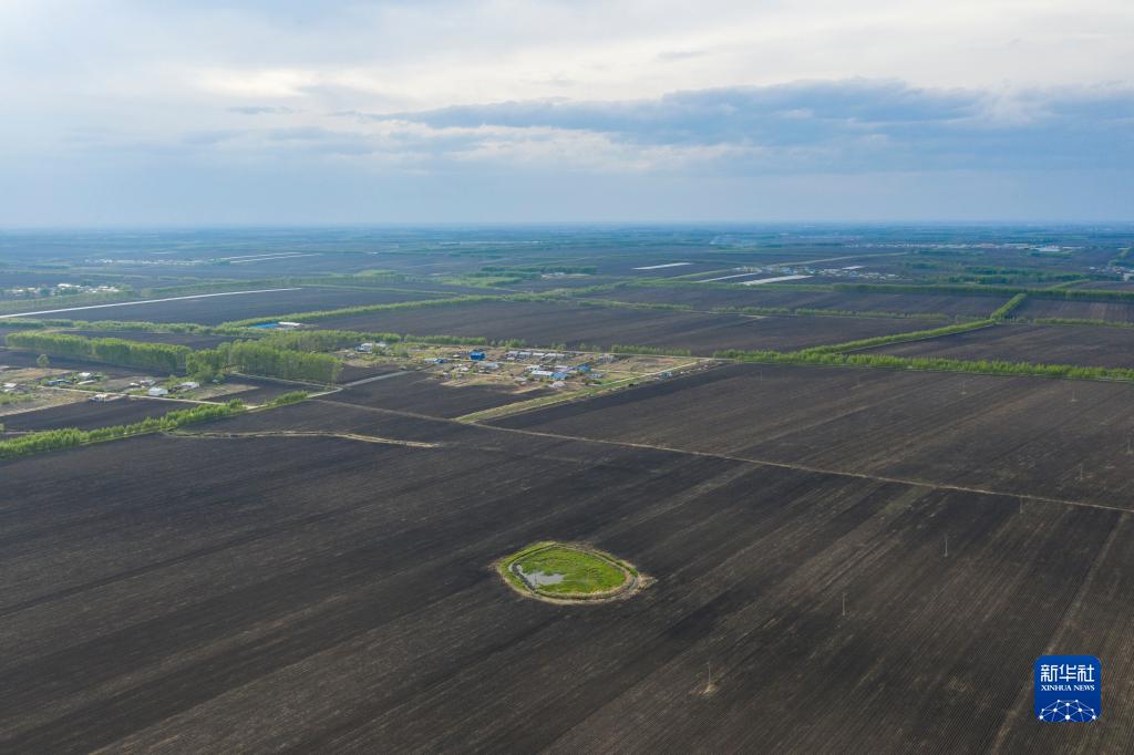 这是黑龙江省海伦市前进镇光荣村已完成播种的黑土耕地(无人机照片,2022年5月23日摄)。新华社记者 谢剑飞 摄