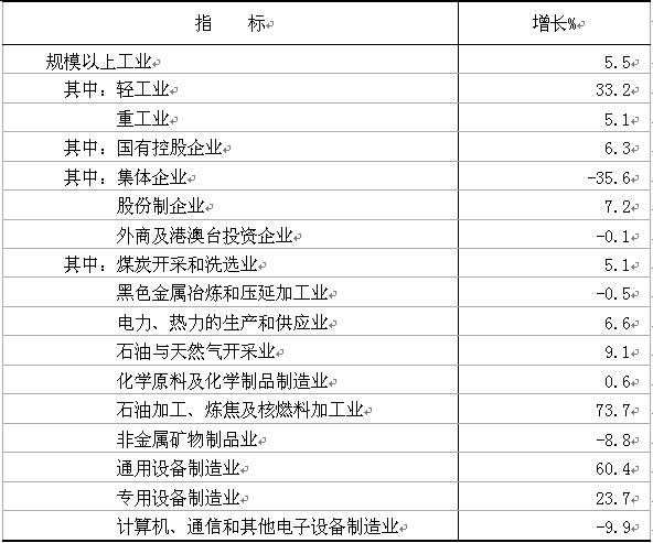 年末全市规模以上工业企业242家。全年规模以上工业增加值比上年增长5.5%。