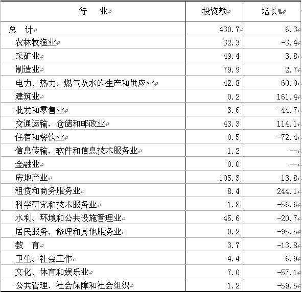 全年全市固定资产投资(新口径)完成430.7亿元,同口径增长6.3%。其中,国有及国有控股投资161.2亿元,增长20.1%;港澳台及外商投资26.3亿元,下降12.1%;民间投资243.5亿元,下降15.4%。