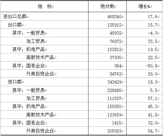 全年出口煤炭22万元,下降75.4%;出口钢材2.2亿元,下降1.2%;出口机电产品10.4亿元,增长19.5%;出口高新技术产品3.8亿元,增长22.5%;出口电器及电子产品6.1亿元,增长20.4%;出口计算机及通信技术产品2.5亿元,增长45.0%。
