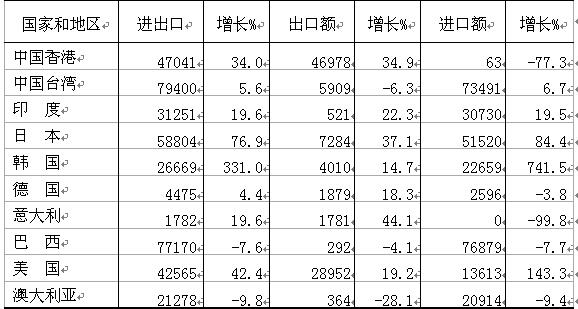 全年进口铁矿砂13.4亿元,下降12.9%;进口机电产品15.6亿元,增长45.3%;进口集成电路4.1亿元,下降6.0%;进口机械设备4.5亿元,增长198.0%;进口电子技术产品5.0亿元,下降5.8%;进口计算机集成制造技术产品3.5亿元,增长296.3%。
