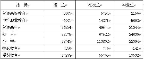年末全市普通高等学校1所,独立设置的成人高等学校1所。高中阶段毛入学率95.88%。